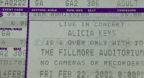 Alicia Keys Concert Ticket Stub 2002 Fillmore Auditorium CO 'Live in Concert'