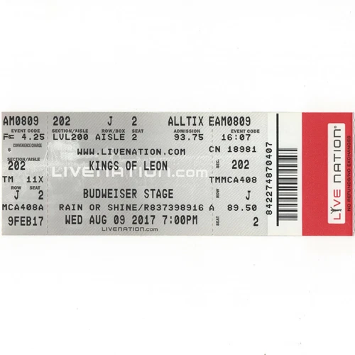 KINGS OF LEON Concert Ticket Stub TORONTO 8/9/17 BUDWEISER WALLS TOUR Rare