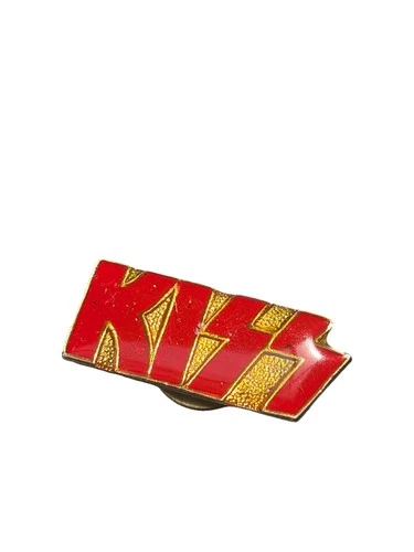 KISS Pin Badge Red Logo Shiny Gold Colored 1980's Vintage Kiss Memorabilia C