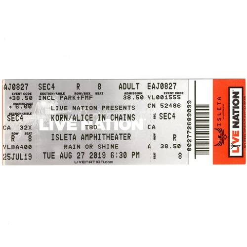KORN & ALICE IN CHAINS Concert Ticket Stub ALBUQUERQUE NM 8/27/19 Rare