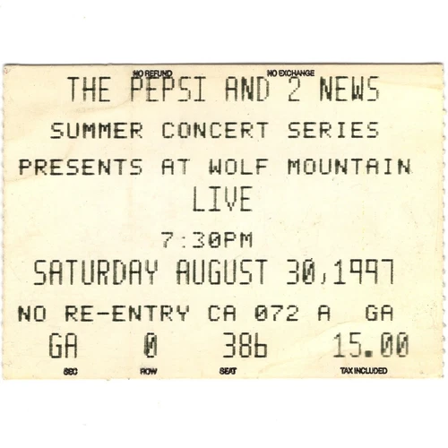 LIVE & LUSCIOUS JACKSON Concert Ticket Stub PARK CITY UTAH 8/30/97 WOLF MOUNTAIN