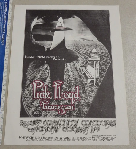 RARE ORIGINAL 1971 PINK FLOYD - SAN DIEGO COMMUNITY CONCOURSE CONCERT HANDBILL