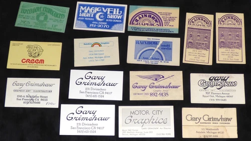 GARY GRIMSHAW BUSINESS CARD SET OF 15 SIGNED CREEM MAGAZINE ROBERT CRUMB MC5