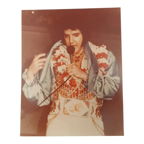 Elvis Presley Color 8x10 Photo White Egyptian Bird Jumpsuit 1975 1976