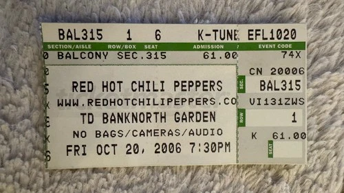 Red Hot Chili Peppers Ticket Stub - 2006 Boston TD Banknorth Garden