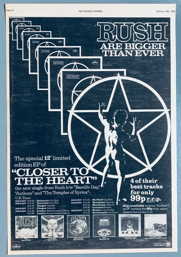 RUSH 1978 original UK POSTER ADVERT CLOSER TO THE HEART LIMITED EDITION EP