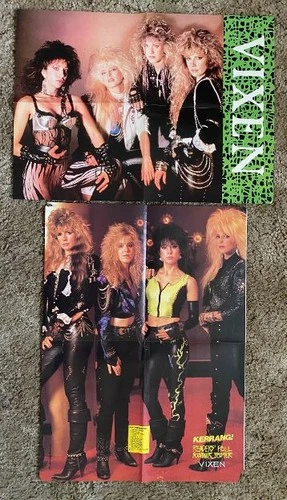 Vintage Lot of 2 Vixen Posters 18" x 22" & 17" x 23" Metal Magazine Fold-Outs