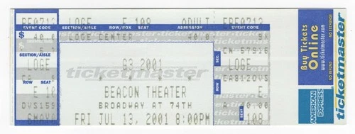 G3 Joe Satriani Steve Vai John Petrucci 7/13/01 NYC NY Beacon Theater Ticket!
