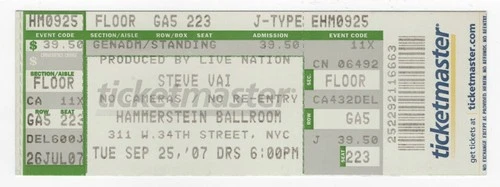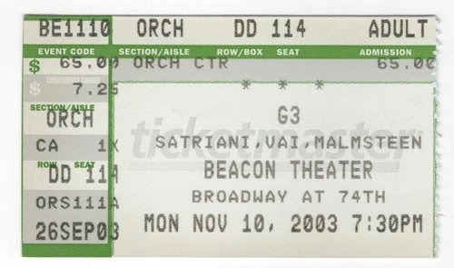 G3 Joe Satriani Steve Vai Yngwie Malmsteen 11/10/03 NYC Beacon Thtr Ticket Stub