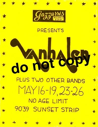 Van Halen concert flyer Gazzarri’s nightclub, West Hollywood, CA 5/16-19+23-26