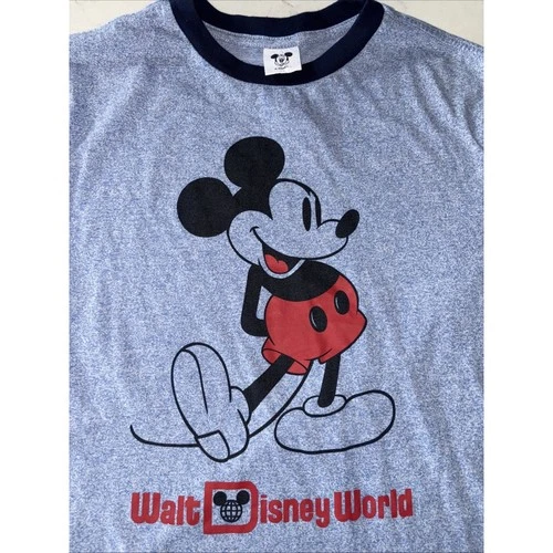 Disney Walt World Mickey Mouse T Shirt Graphic Blue Ringer Tee Vtg S