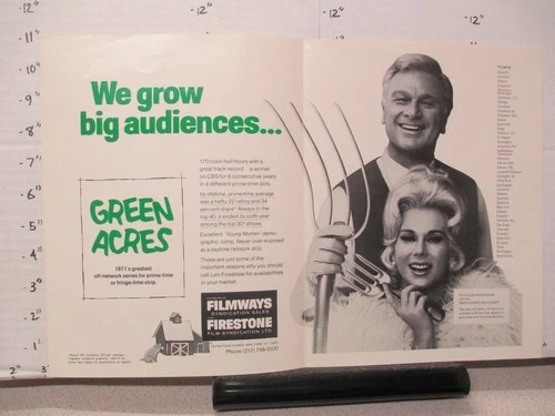 GREEN Acres 1972 CBS TV show Eddie Albert Eva Gabor Filmways promo ad sheet