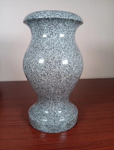 Solid Granite Turned Memorial Vase Gray Polished Approx 9" X 5" EUC