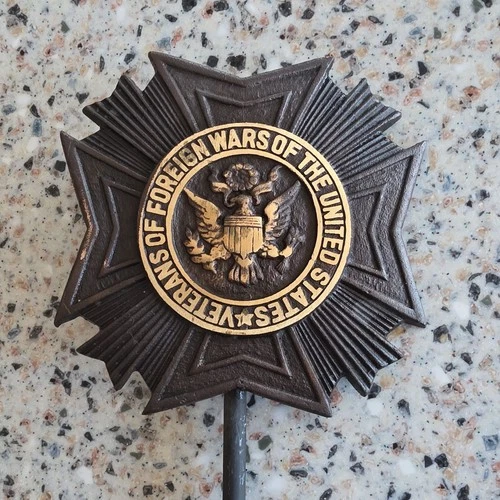 Veterans of Foreign Wars Bronze In Ground Grave Marker 5in Diameter 18in Stake