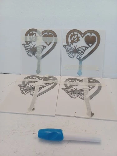 4-Memorial Cemetary Grave Markers Heart/Butterfly Plaque Stakes S/S FREE SHIP
