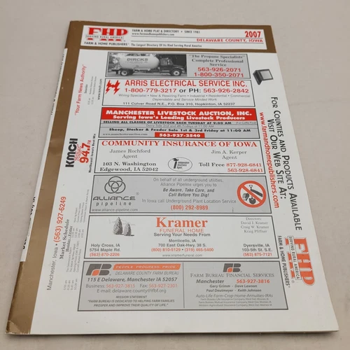 2007 Delaware County Iowa Farm Home Directory Plat Book Manchester Dyersville IA