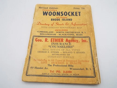 1950'S WOONSOCKET RHODE ISLAND DIRECTORY OF STREETS & INFORMATION
