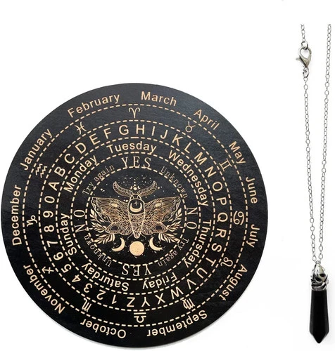 Wooden Divination, Wooden Pendulum Board Dowsing with Crystal Dowsing, Witchcraf
