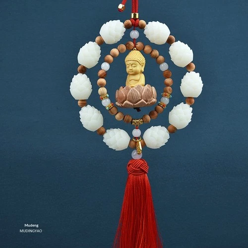 Boxwood Buddha Car Rearview Mirror Hanging Ornament Pendant