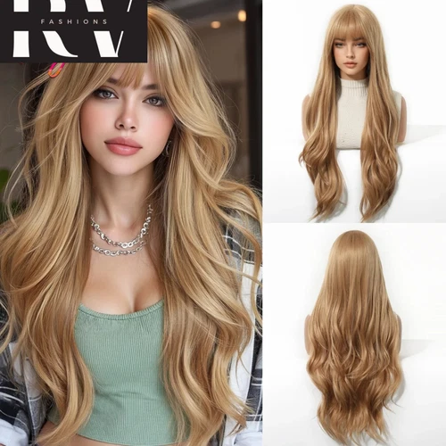 Women's Long Golden Blonde Wave Wigs Golden Brown Cosplay Costume Natural Hair