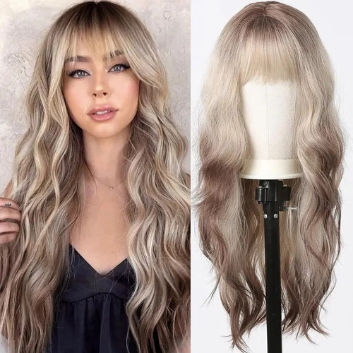 Blonde Brown Synthetic Wig With Bangs Long Curly For Women