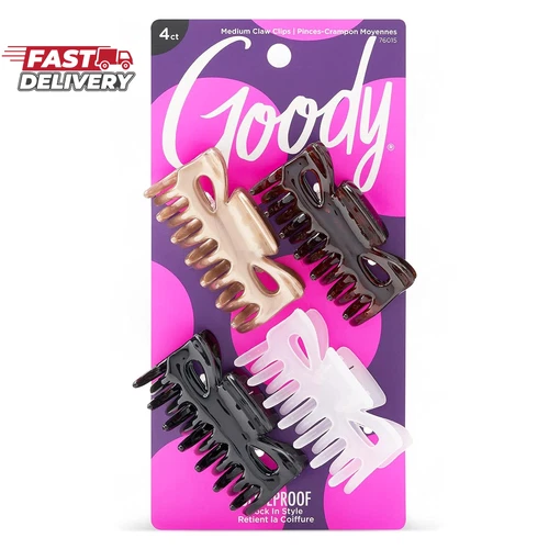Goody Slideproof Classics Medium Claw Clips - 4 Ct, Assorted Neutrals, Hair Styl