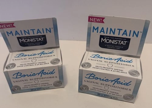 2 Monistat MAINTAIN Boric Acid Suppositories Vaginal pH Balance Odor Control