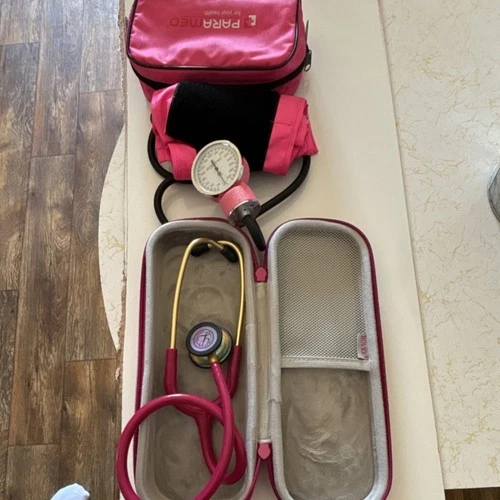 PARAMED Analog Blood Pressure Testing Kit Pink Stethoscope Cuff Monitor Case