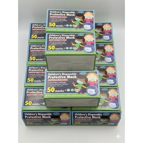 13 Box Lot Kids Disposable Face Mask 50 Ct 3 Ply Child Blue Non Medical