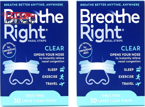 Breathe Right Nasal Strips to Stop Snoring, Drug-Free, Clear for Sensitive Skin,