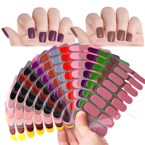 16 Strips Semi Cured Gel Nail Stickers UV Lamp Required Gel Wrap;