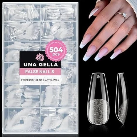 UNA GELLA Medium Coffin Nail Tips - 504pcs Full Cover Gel Nails, 12 Sizes