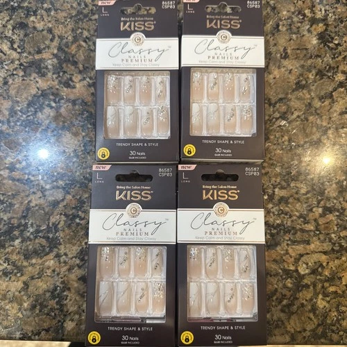 Lot of 4 Kiss Classy pink rhinestone Nails LONG 86587 NEW