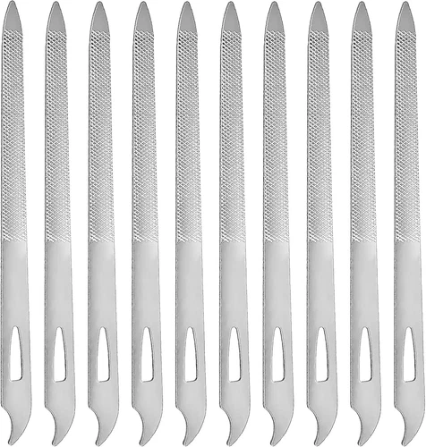 10-Pack Metal Nail Files for Natural Nails - Stainless Steel, Thin, Durable with