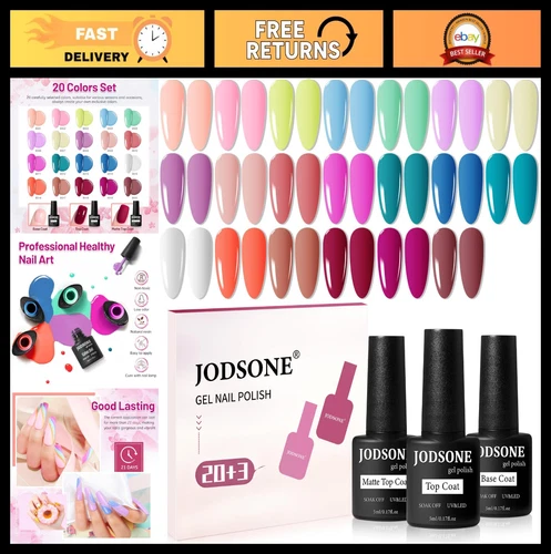 20 Color Gel Nail Polish Kit - Vibrant High Shine, Base & Top Coats Included