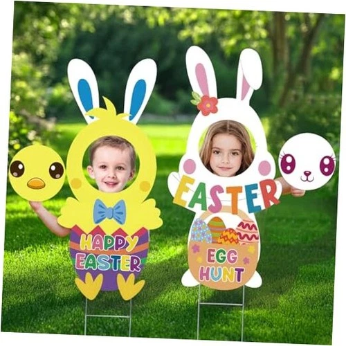 Easter Outdoor Decorations 2 PCS Easter Face Yard Sign 33.46 inch Happy Easter