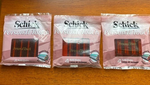 3 New Schick Personal Touch Razor 4 Refill Blades Vitamin E Aloe (12 Blades)