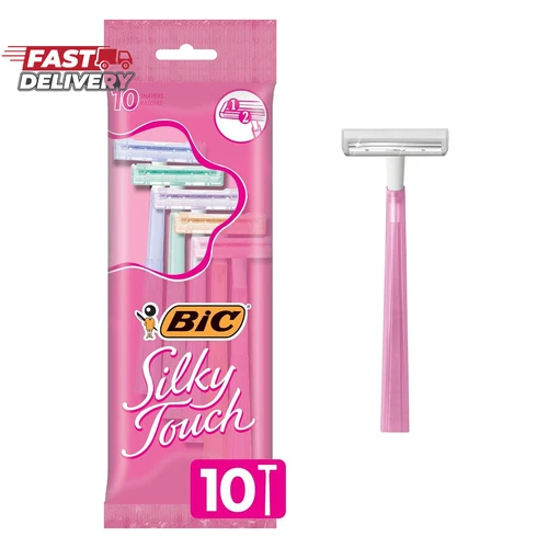 BIC Silky Touch Women'S Disposable Razors, with 2 Blades, Pretty Pastel Razor Ha
