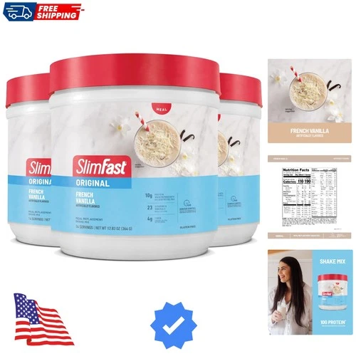 Meal Replacement Powder, French Vanilla, Weight Loss Shake Mix, 10g of Protei...