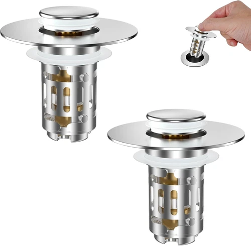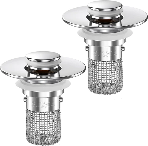 2PCS Bathroom Sink Stopper Strainer Pop Up Drain Hair Catcher Universal Fit
