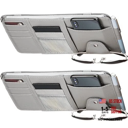 2 Packs Car Sun Visor Organizer, Sunglasses Holders for 12.2 x 6.1 Inches Gray