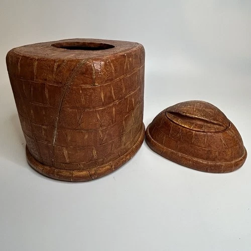 Football Themed Tissue Box & Trinket Box Porcelain Leather Look With Seams