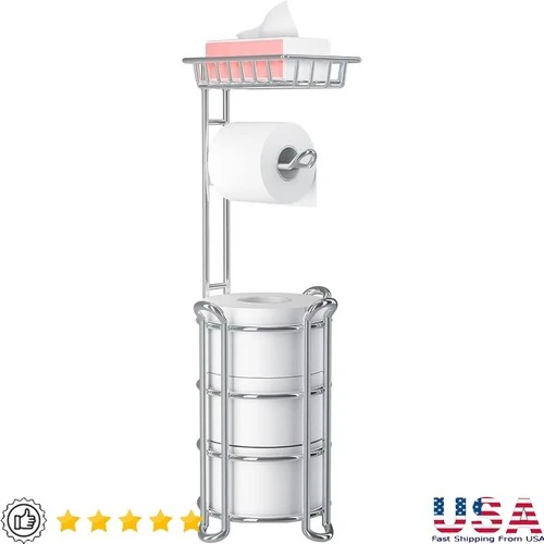 Freestanding Toilet Paper Holder W/ Storage 4 Rolls Bathroom Organizer New
