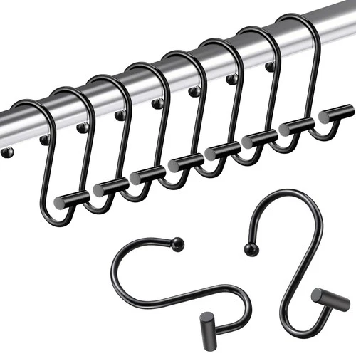 Black Shower Curtain Hooks, Chrome Shower Curtain Rings Rust Proof, 12PCS Sho...