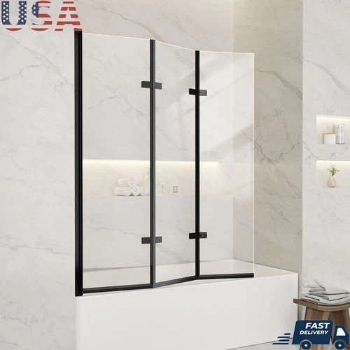 Pivot Bathtub Folding Door High Strength Glass Waterproof Installation Kit New