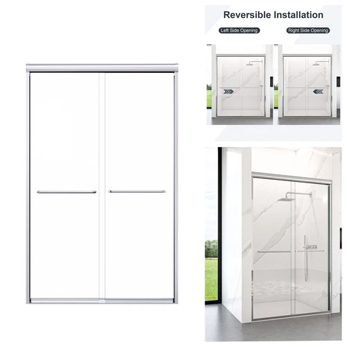 Shower Door Double Sliding 44"-48" Wx72" H Semi-Frameless 1/4" Thick Chrome