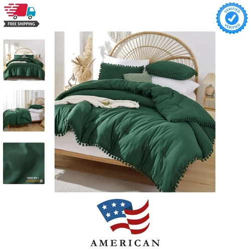 Queen Comforter Set - Comforter Queen Size Sets with Ball Pom Fringe, Soft Be...
