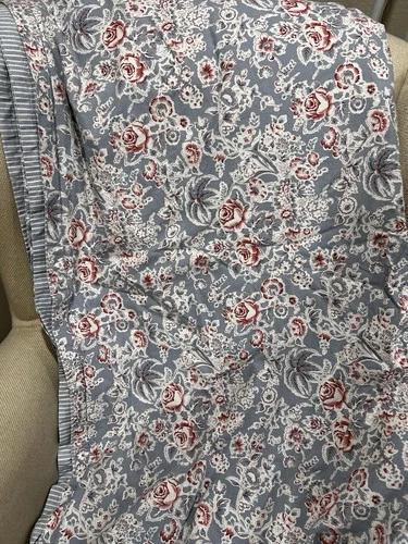 Ralph Lauren Cotton Duvet Cover Queen Blue Dk pink Reversible Cottage Shabby