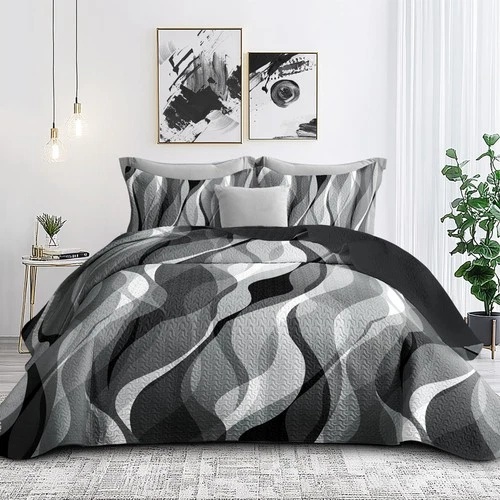 weesire Classic Line Pattern Bedding Quilt Twin Size Modern Grey Black and White