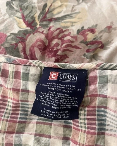 VTG Chaps Ralph Lauren Wainscott Pink Floral/Plaid Reversible QUEEN Comforter